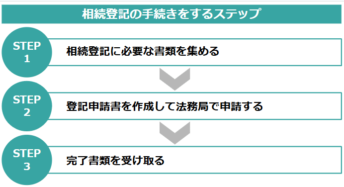 不動産の相続登記は下記のステップで手続きできるため、期限内に終わらせるようにしましょう。