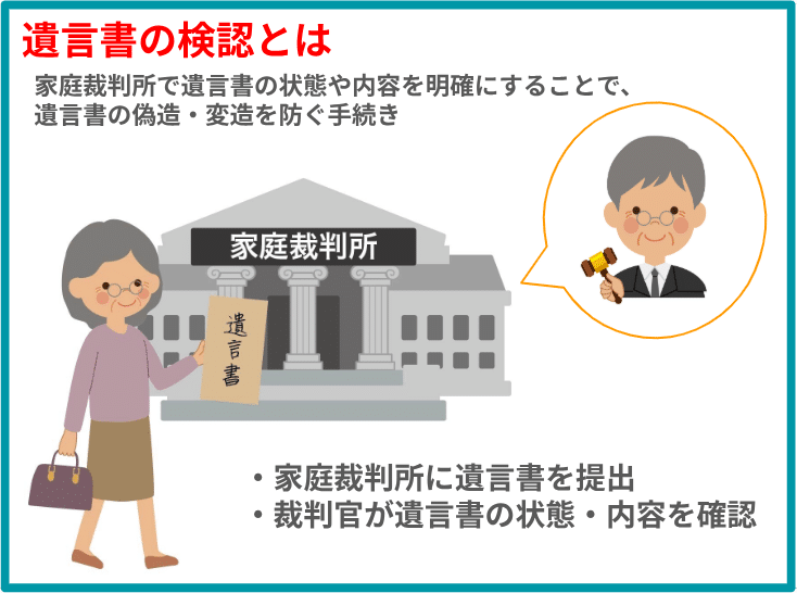 遺言書の検認とは、家庭裁判所で遺言書の状態や内容を明確にすることで、遺言書の偽造・変造を防ぐ手続きです。